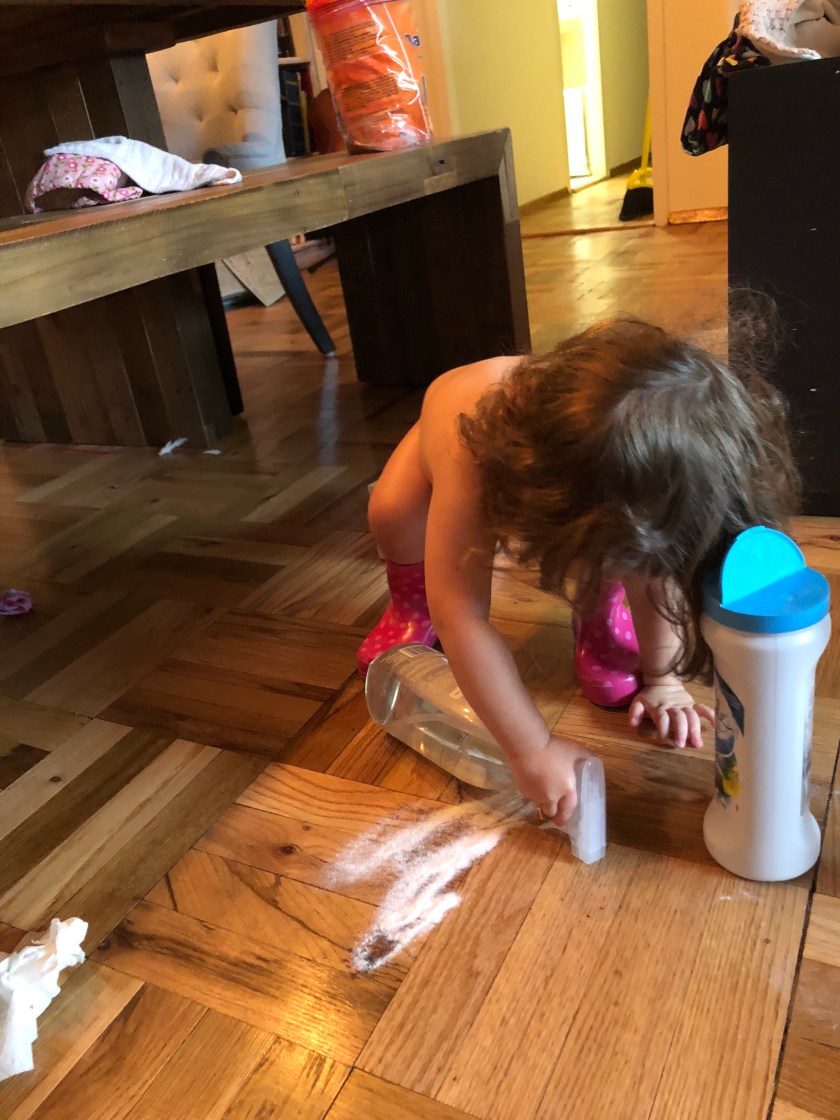 The next 45 minutes proceeded to include one of her epic tantrums. You’d think it was in response to me stopping her from using chemicals to clean piss.